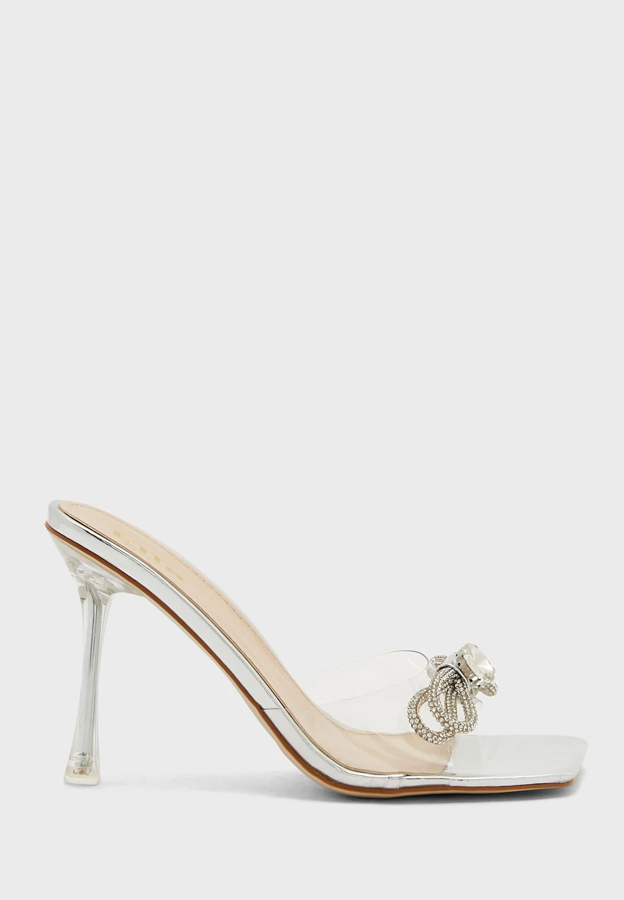 Clear Diamante Bow Square Toe Sandal