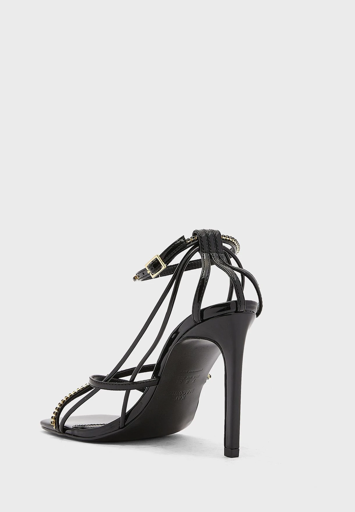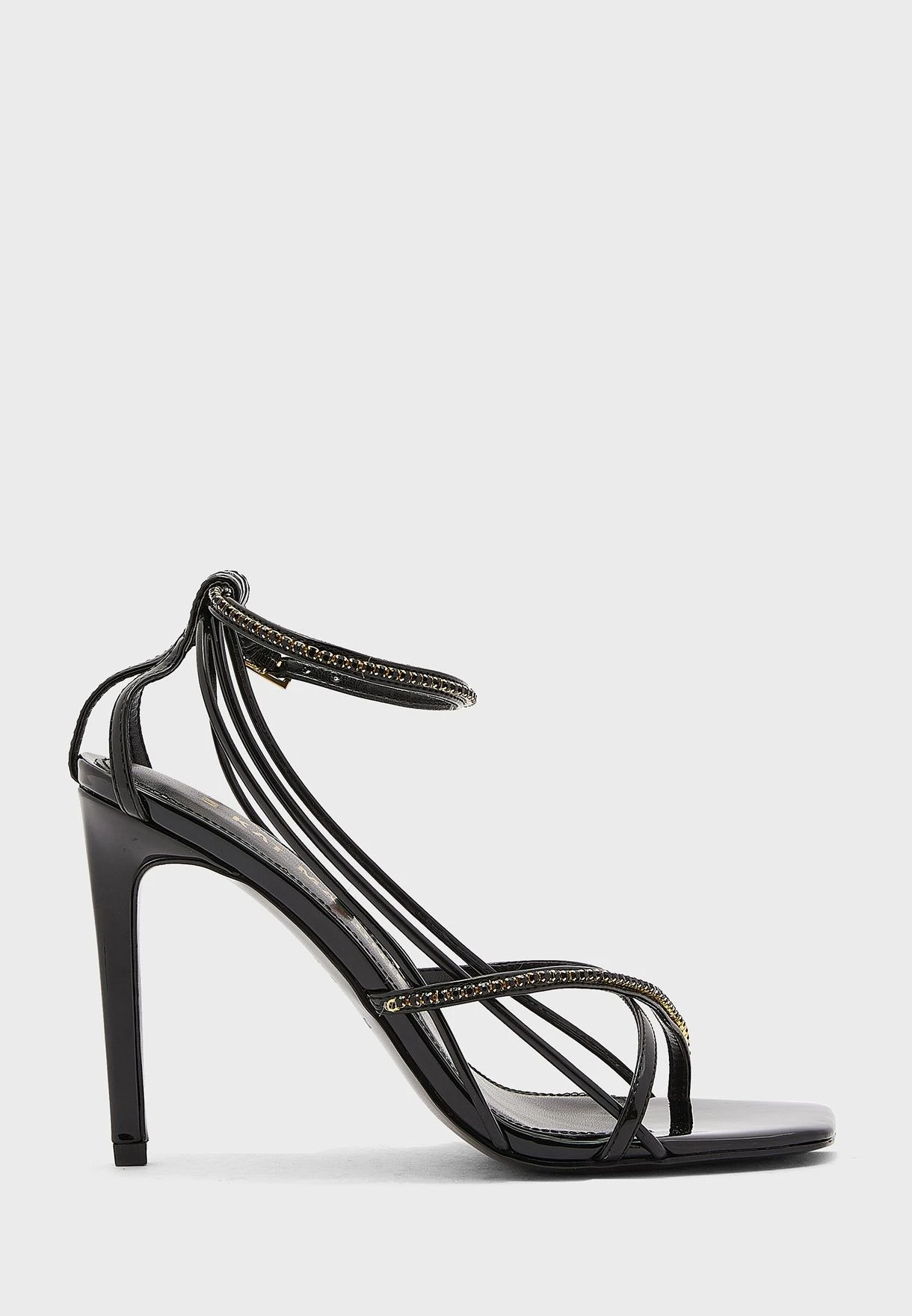 Completed with luxurious details, this strappy high heels brings a lavish finishing touch to your evening edits.
